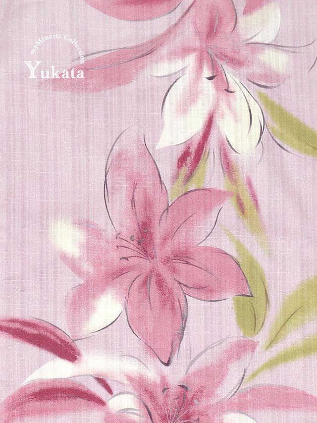 SWEET 淡いピンク × 水彩 百合 ゆかた3点セット