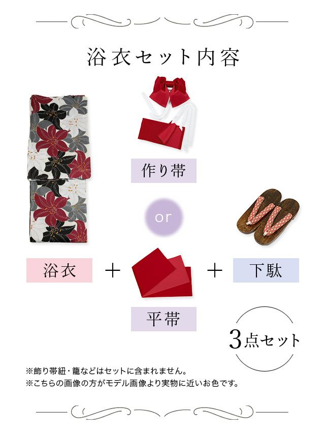 浴衣・帯・下駄が揃った、届いてすぐ着られる3点セット♪