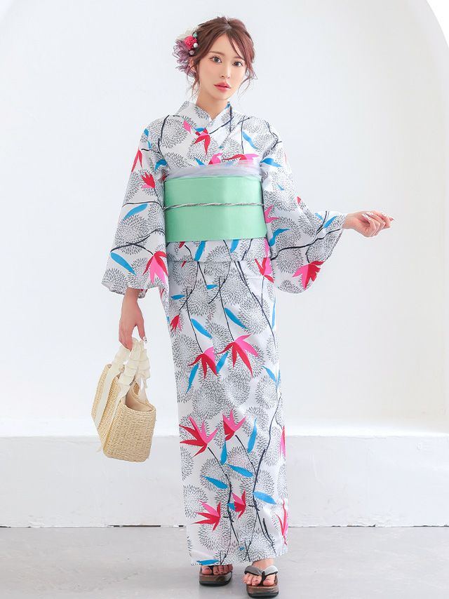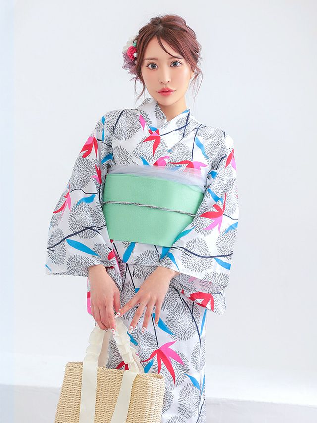 白地に菊や紅葉柄を散りばめたデザインは、清涼感たっぷり♪