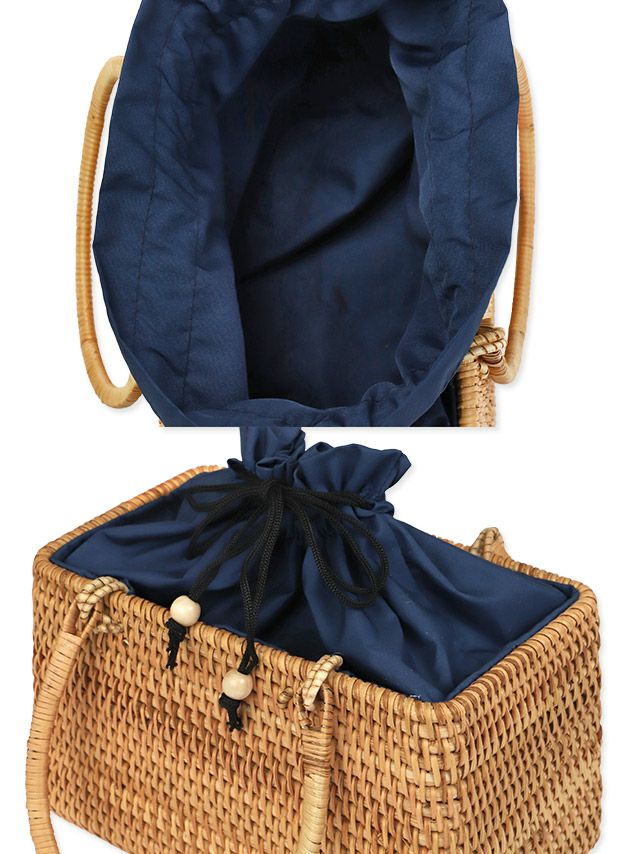 シンプルスクエア型ブラウン×ネイビーミニかごバッグ