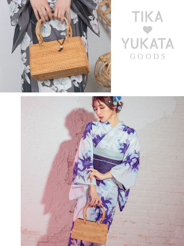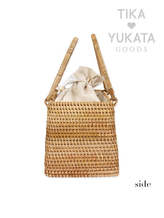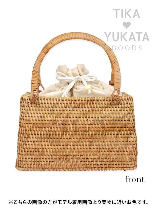 浴衣バッグシンプルスクエア型ブラウン×ネイビーミニかごバッグ