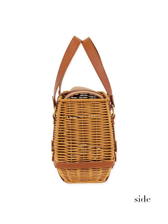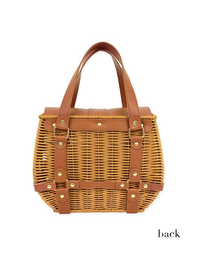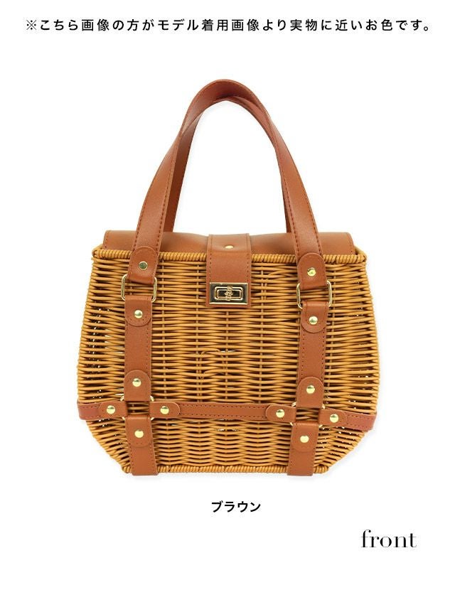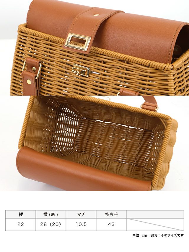 小物 バスケットレザーハンドルスクエアかごバッグ
