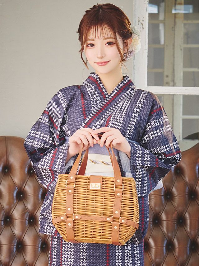 5. 浴衣 小物 バスケットレザーハンドルスクエアかごバッグ