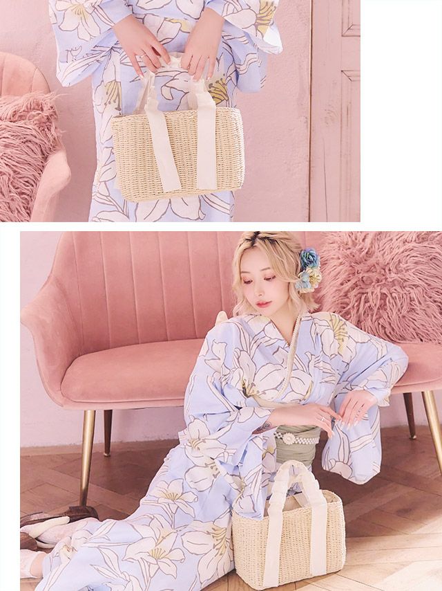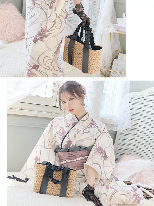 5. 浴衣 小物 ハンドルリボンテープペーパーかごバッグ