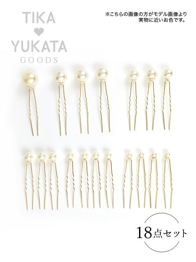 髪飾り パール付き浴衣ヘアアクセサリー18本セット