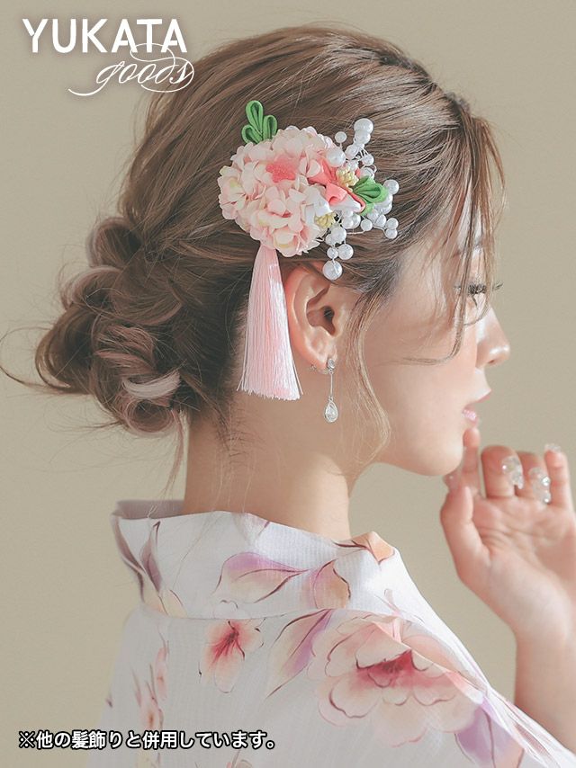 アジサイコサージュ タッセル付きヘアアクセサリー