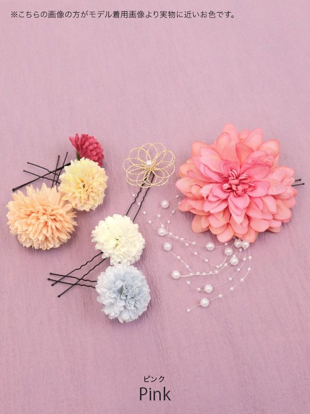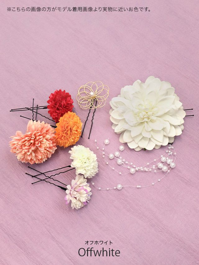 浴衣 髪飾り ダリア×マムパール付き浴衣ヘアアクセサリー8点セット(オフホワイト/ピンク)