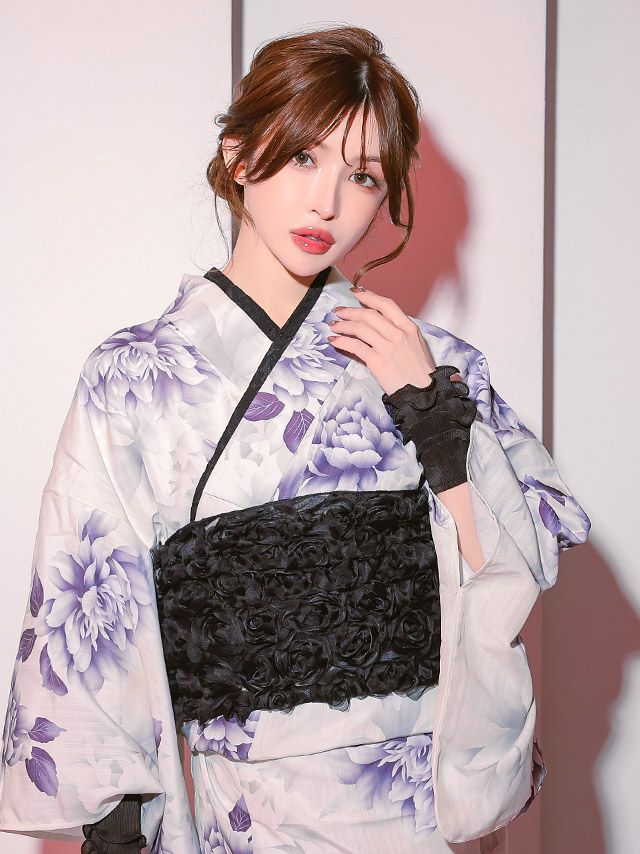 立体的な3Dローズを贅沢にあしらった、存在感たっぷりの兵児帯♡
