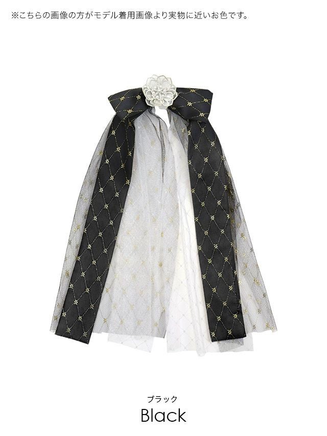 4. 浴衣小物 ガーリー ビジュー リボン ブローチ 帯飾り (ホワイト/ブラック)