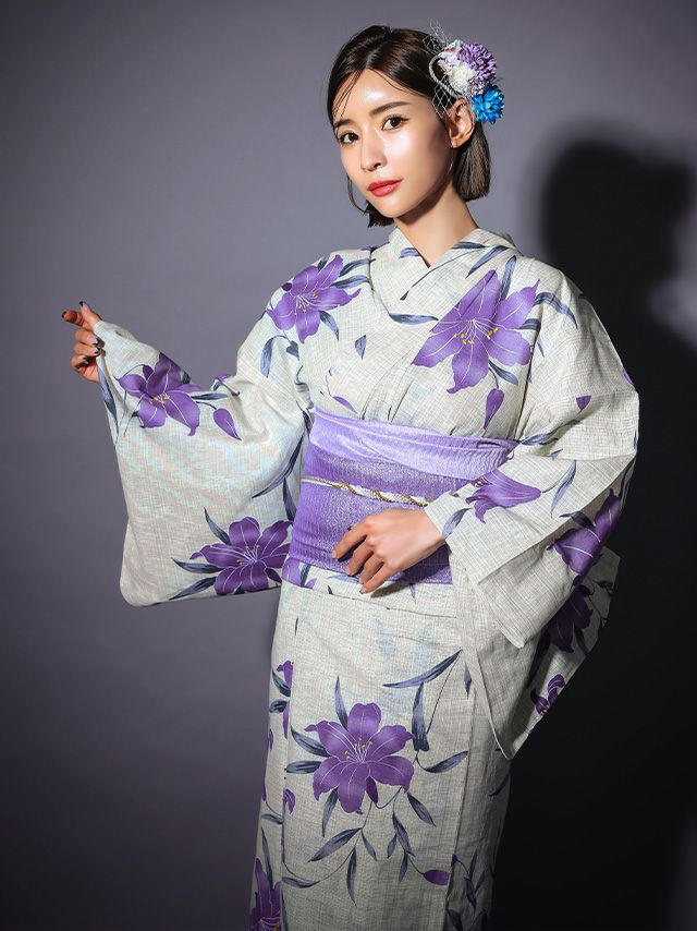 綿麻白地で和な雰囲気が出てる気品高い浴衣♪