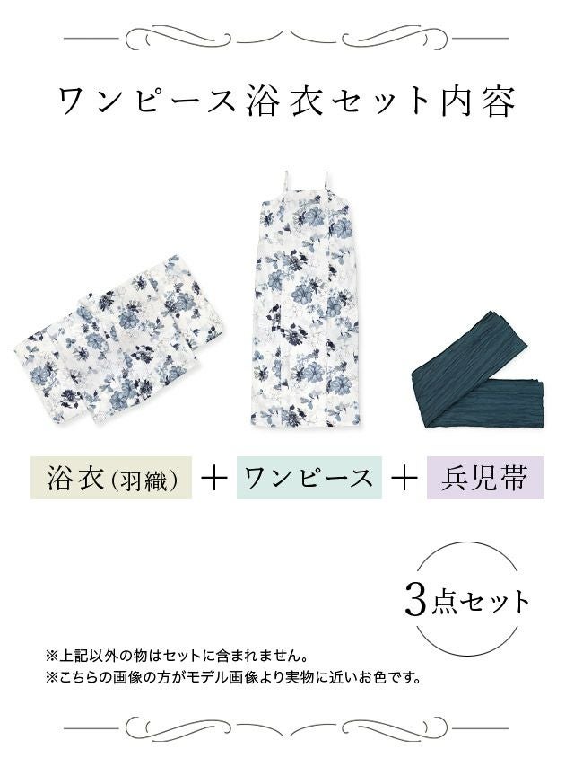 ワンピース 紺地 アンティーク 百合 ゆかた3点セットのセット内容
