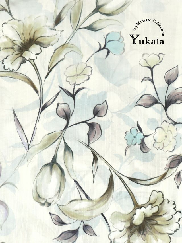 浴衣 SWEET ホワイト×水彩フラワー ゆかた3点セット (浴衣+兵児帯+下駄)