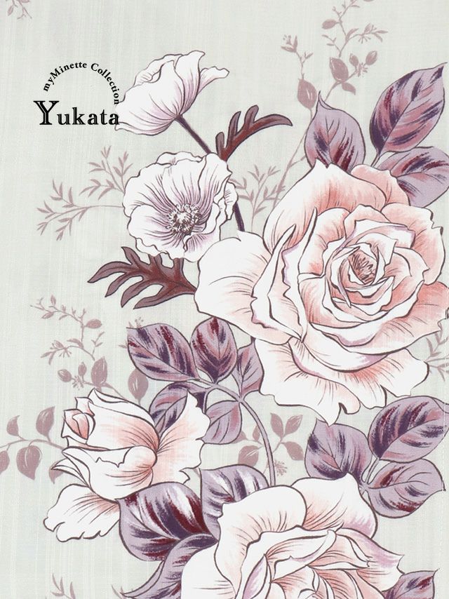 浴衣 選べる帯 SWEET くすみグレー×クラシカルローズゆかた3点セット (浴衣+平帯or作り帯+下駄) (浦西ひかる着用)