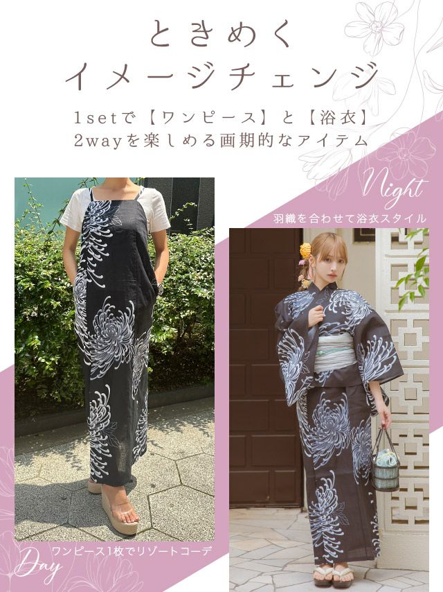 着脱簡単なワンピース浴衣で、初心者さんにも安心なデザイン♪
