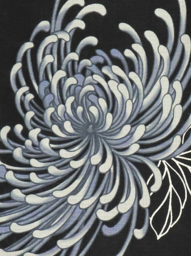 暗い黒地にライトブルーの大きな乱菊が映える☆