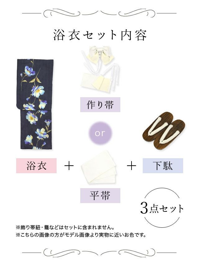 \浴衣+平帯or作り帯+下駄の3点セット/