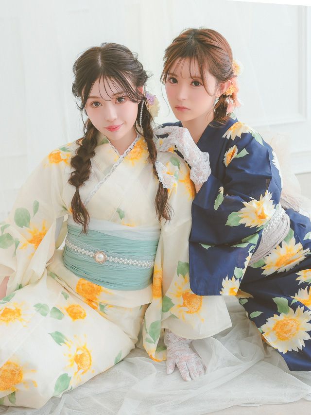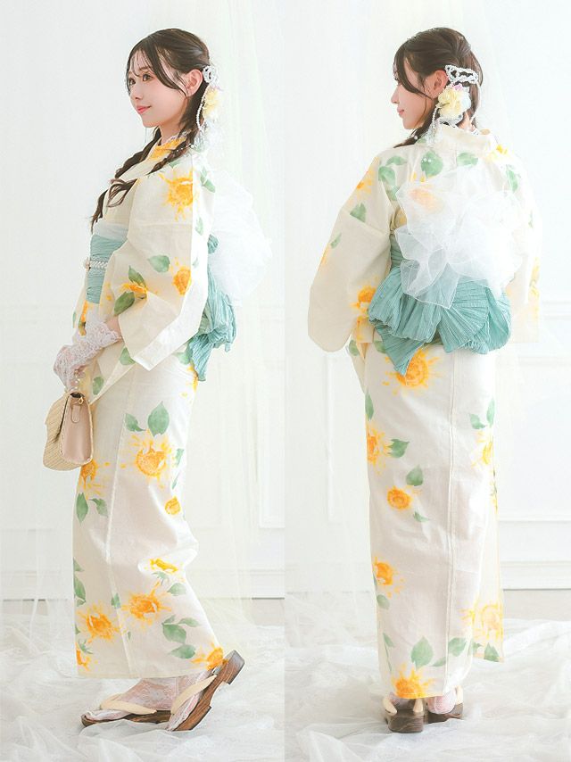 4. 浴衣 SWEET グラデーション 向日葵 ゆかた3点セット (浴衣+兵児帯+下駄)