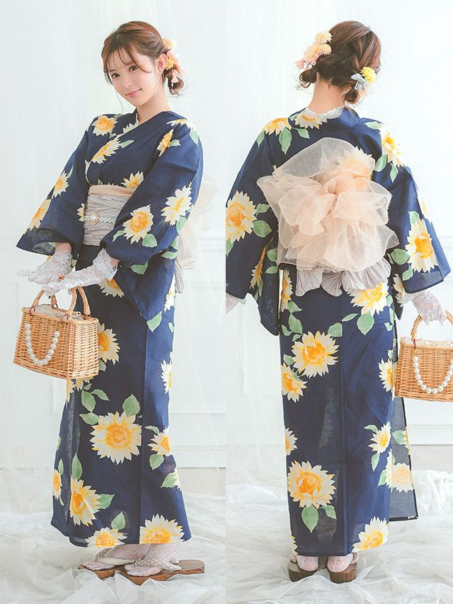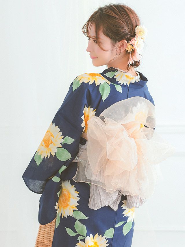 後ろ姿まで可愛いを演出♪ 浴衣 SWEET グラデーション 向日葵 ゆかた3点セット (浴衣+兵児帯+下駄)