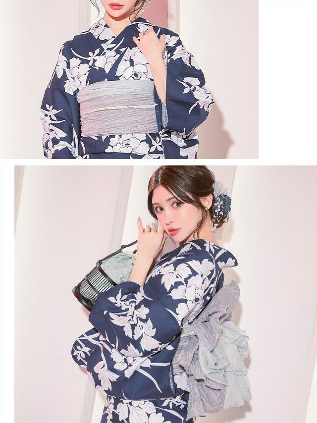 4. 浴衣 妖艶 紺地×大きな白牡丹 ゆかた2点セット (浴衣+兵児帯)