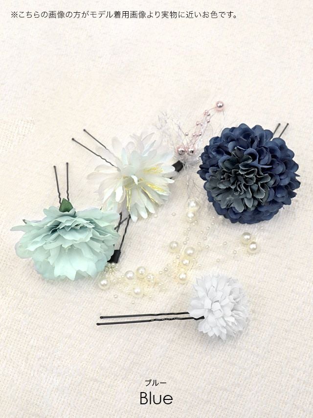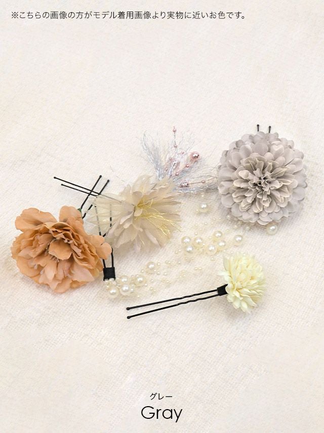 小物 垂れパール付きニュアンスコサージュ浴衣髪飾り6点セット
