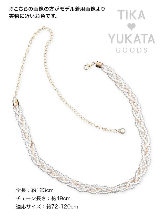 4. 浴衣小物 ゴールドチェーンパール飾り帯紐 (ホワイト×ゴールド)