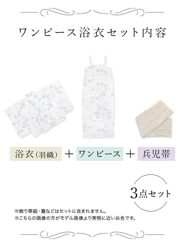 \浴衣羽織+ワンピース+兵児帯 3点セット/