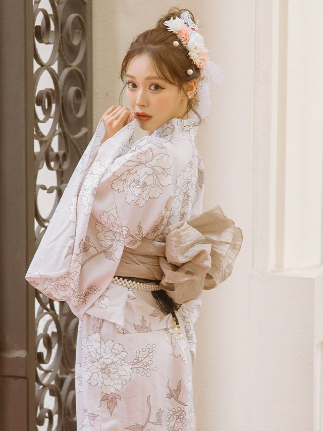 SWEET メルティピンク×繊細ホワイトフラワー ゆかた3点セット